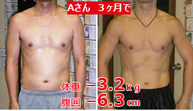 約3ヶ月前、体重増加と下っ腹が出始め、どうしても若かった頃の体型に戻したくて、パーソナルトレーニングを始めました。 最初の頃は、辛い日もありましたが、変わっていく自分の体型にヤル気も出て、頑張る事ができ、3ヶ月後には思っていた以上の体型になり、ビックリです。 スーパートレーナーの堀さん、感謝、感激です!!3ヶ月間ありがとうございました。