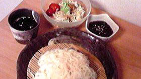 後、寒天をかきまぜる時に、ふやかせたゼラチンを入れて、固めると、わらび餅になります!