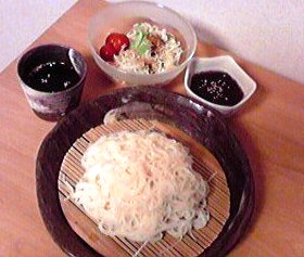 冷麦 サラダ (レタス、きゅうり、トマト) もずく酢 |