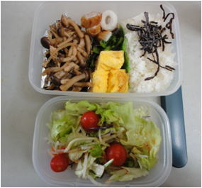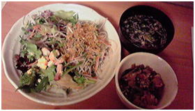 サラダ3種ノンオイルドレッシグ (カリカリじゃこ) (ゆで卵ベーコン) (大根とナッツ) シジミとメカブ吸物 ササミと麸とネギ卵とじ |