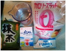 ★作り方★ 水に寒天を入れ、ダマにならないように、かき混ぜる。 抹茶、砂糖、プロテインを入れ、沸騰させる。 粗熱を取り、冷蔵庫で冷やし固める。 |