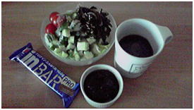 | 生姜紅茶 プロテインバー サラダ (レタス、きゅうり、トマト) コーヒーゼリー |